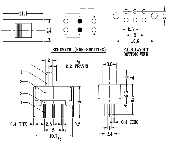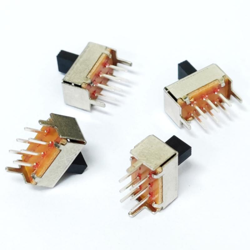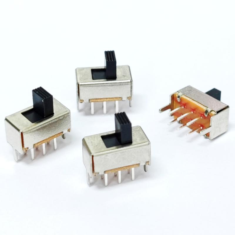 Los interruptores deslizantes 2P2T son un interruptor de control bipolar de doble tiro (2 polos, 2 tiros) que permite la conmutación de dos estados para dos circuitos independientes (por ejemplo, encendido/apagado, selección de modo) a través de una operación de balanceo, ideal para escenarios que requieren control sincronizado de circuitos duales.