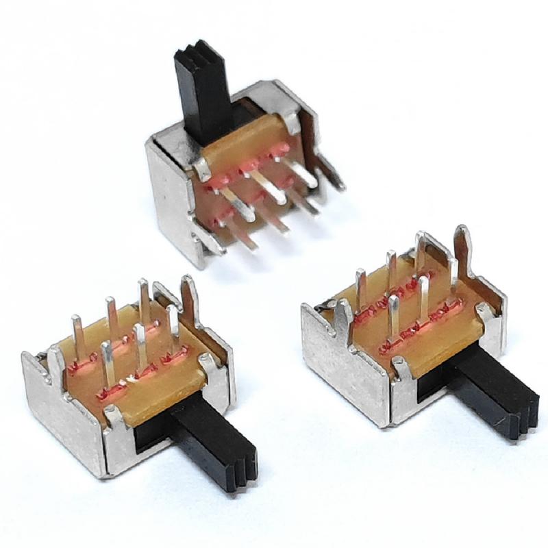 El interruptor deslizante DPDT ON - ON es un interruptor deslizante bipolar de doble tiro que puede controlar simultáneamente dos circuitos independientes y cambiar entre dos estados de conducción estables, adecuados para varios escenarios, como rotación de avance y retroceso del motor y enrutamiento de señales.