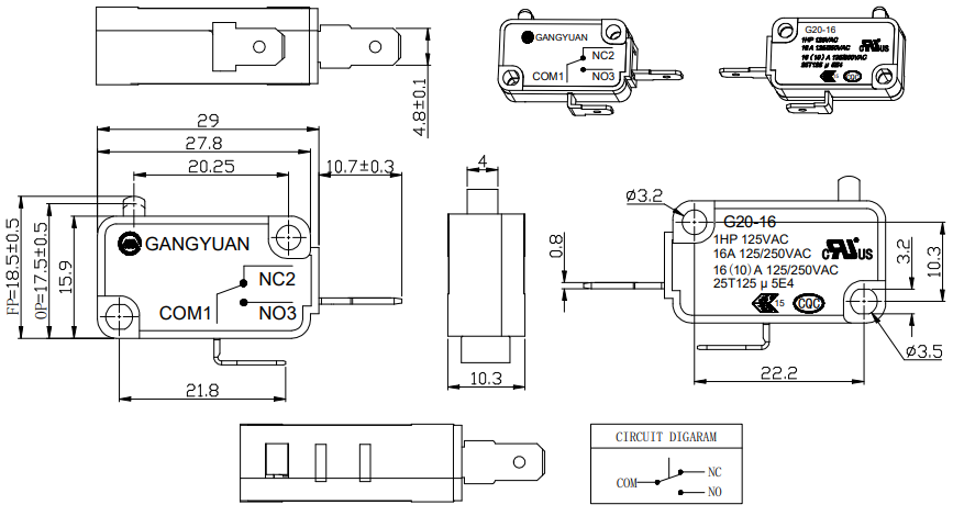 Este microinterruptor puede transportar de forma segura 16 A de corriente, puede satisfacer fácilmente los requisitos de trabajo de varios equipos eléctricos y garantizar de manera efectiva el funcionamiento suave y el uso seguro del circuito.
