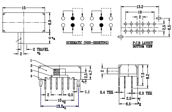 Características principales del interruptor deslizante 4P2T (conciso y combinado)